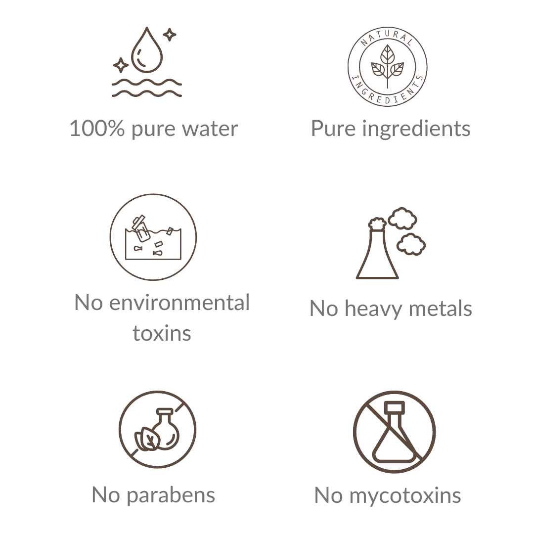 Our formulations are free from mycotoxins, heavy metals, environmental toxins, and parabens, ensuring your skin receives only the best.